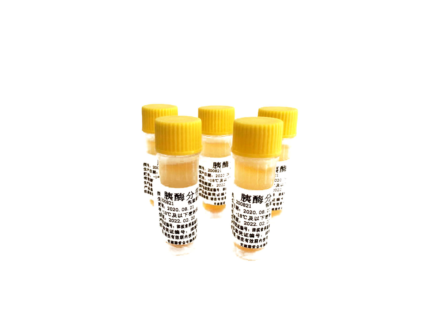 用于染色體 G 顯帶制備。臨床上用于染色體檢查。 胰酶分帶溶液主要含有胰蛋白酶、胰淀粉酶和胰脂肪酶等,胰蛋白酶能使大分子蛋白轉化為小分子蛋白肽鏈,胰淀粉酶使淀粉轉化為糊精與糖,胰脂肪酶則使脂肪分解為甘油和脂肪酸。在中性或弱堿性條件下活性較強。消化細胞膜和核膜,使染色體從細胞中釋放出來。